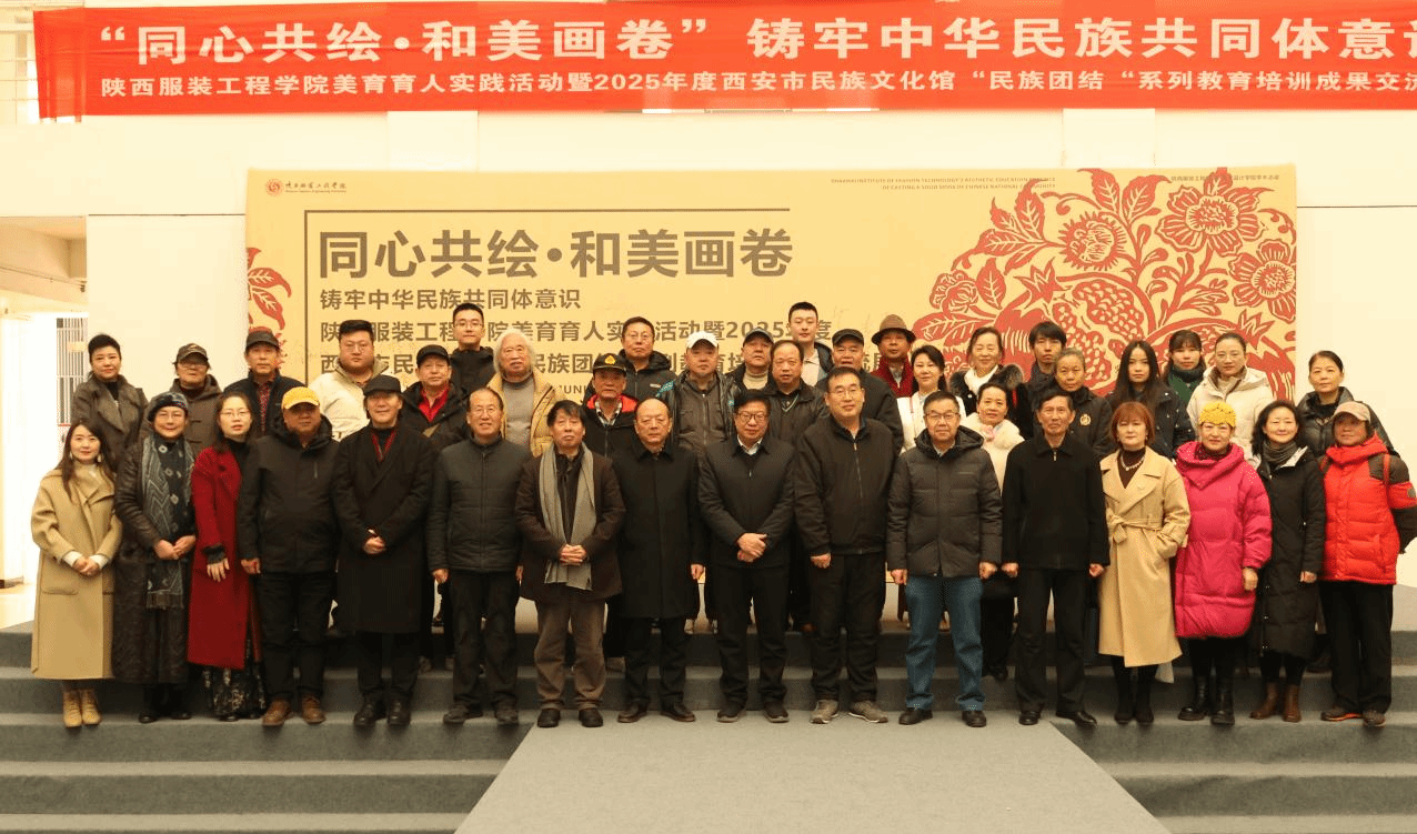 12月18日上午,由我校与西安市民族宗教事务委员会联合主办,我校艺术设计学院、公共艺术教育中心承办的同心共绘·和美画卷—铸牢中华民族共同体意识陕西服装工程学院美育育人实践活动暨2025年度西安市民族文化馆“民族团结”系列教育培训成果交流展在我校盛大启幕。本次展览全面贯彻落实中央民族工作会议精神,通过美育实践与民族团结教育的深度融合,生动展现了新时代高校美育工作与民族团结进步教育协同创新的丰硕成果。开幕式由陕西服装工程学院艺术设计学院党委书记、...