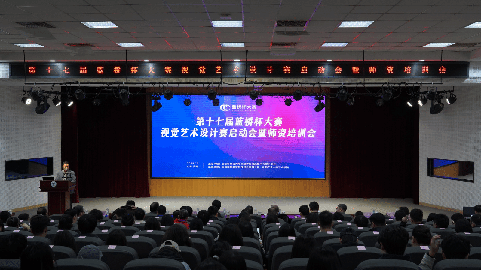 本次会议由蓝桥杯全国大学生软件和信息技术大赛组委会主办,紧扣“科艺融合”与“乡村振兴赋能”两大核心主题,设置第十六届大赛总结表彰、第十七届大赛启动、专家主旨分享、双论坛研讨、赛项解析等多元环节。教育部高等学校动画、数字媒体专业教指委委员王亦飞、严晨,设计学类专业教指委委员王晓予等十余位权威专家,围绕AIGC赋能设计创新、乡村振兴设计实践等前沿议题,为参会者分享了先进理念与实操经验。大赛专家还针对视频设计、动画设计、交互设计(UI)等多个赛项,系统解读竞赛规则、深度剖析历届优秀作品,并分享实战辅导经验,同步组织全体与会人员参观青岛农业大学艺术学院工作室,强化实践交流。